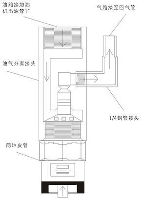 油氣分離接頭的油路接口管徑為1” NPT管牙,目前有許多加油機的出油口管徑是3/4“,因此在現(xiàn)場改造時由客戶提供所需的規(guī)格型號。